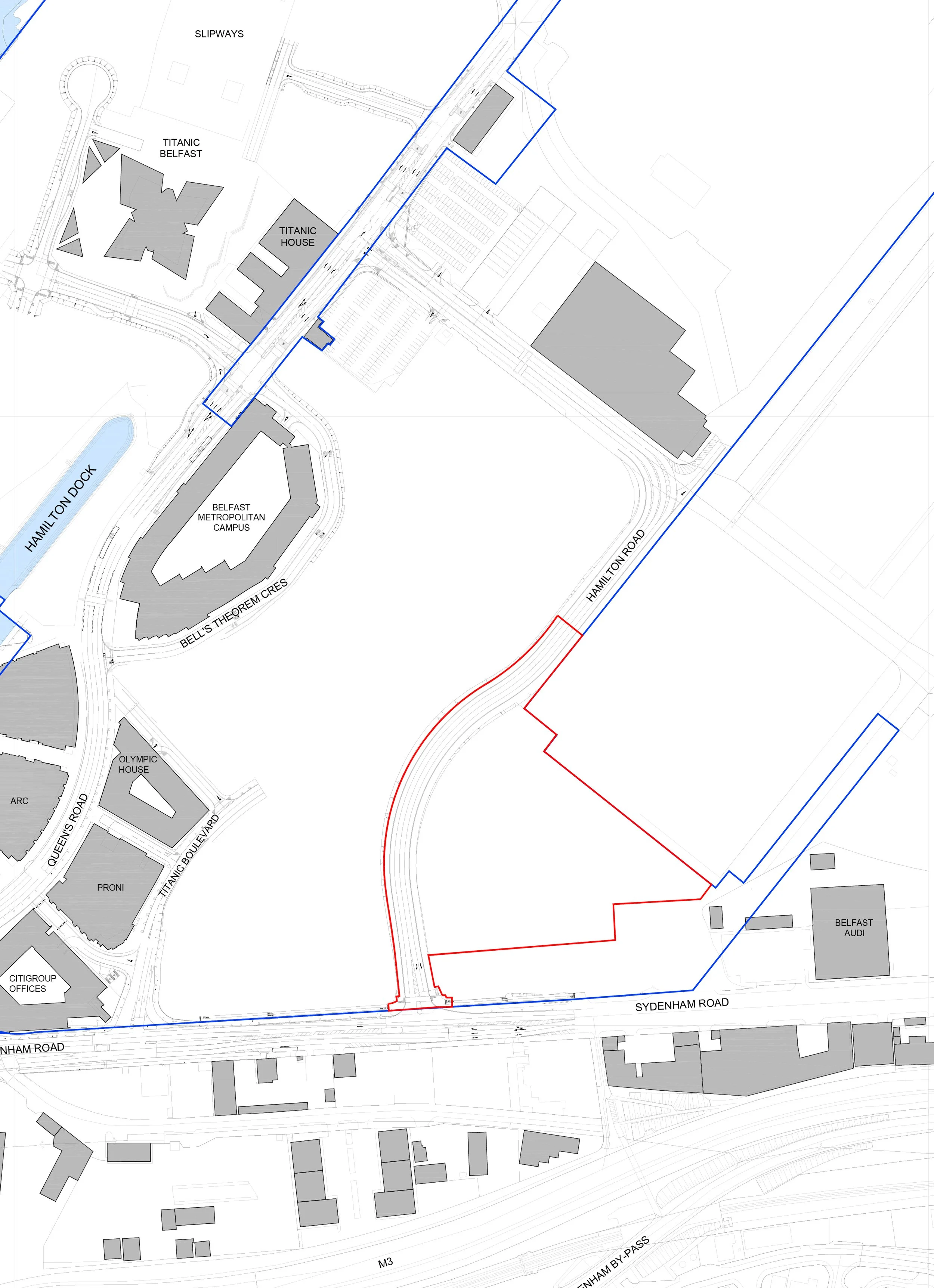 The proposed site is located within Titanic Quarter, on lands to the east of Hamilton Road and west of 80 Sydenham Road, Belfast.