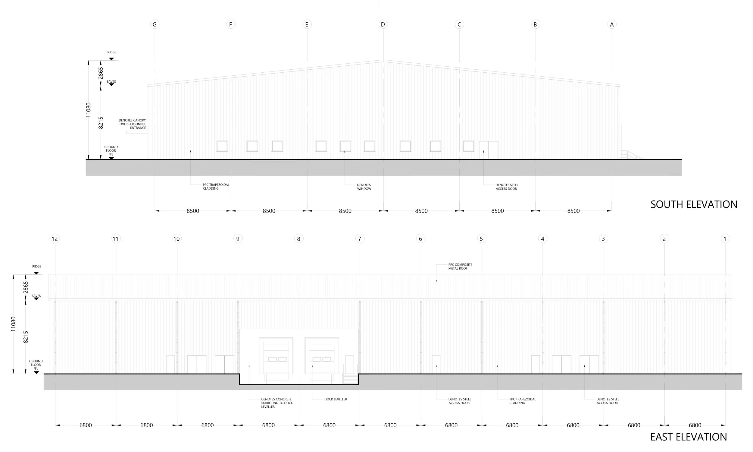 Proposed southern and eastern elevations of the distribution hub at Titanic Quarter. (click to enlarge)